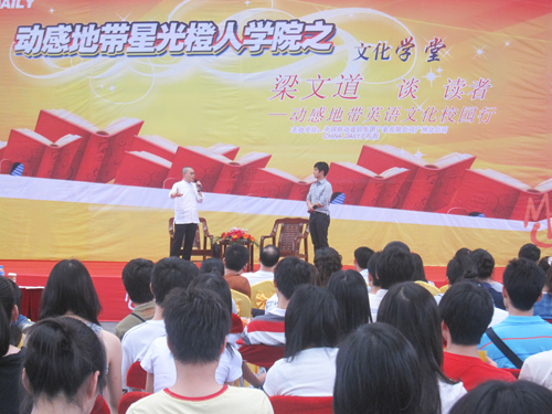 岭南新闻网 5月9日下午,《岭南教育》集团报大学生记者赶赴广州大学城采访凤凰名嘴——凤凰卫视评论员、主持人梁文道。这是岭南大学生记者今年首次“进城”报道文化名流。梁文道的讲演让大学生们充满好奇,来出发之前,《岭南教育》大学生记者读了他的新书《读者》,便迫不及待要做领略他的风采“感受一次文化的洗礼、思想的撞击。” 广州大学城广州大学生活区内,人潮中“文化气息滚动着热浪,冲不散学子的好学心”,《岭南教育》大学生记者抵达活动现场,与中山大学、华南理工大学、广州大学等校报大学生记者“联手”采访,为广大师生独家传递一线信息。 梁文道为大学生“谈读者”,近2个多小时讲演言语犀利、生动坦诚。略带黑色幽默的现场对答,赢得了在场300多名观众的热烈掌声。 好老师善于分享快乐 区分音乐跟噪音的标准是随时而变的,区别好老师坏老师的标准也是可跨越“传道授业解惑也”的。梁文道认为,“自己有求知欲的老师才是好老师,好老师好学,对事物充满好奇心,好老师最大的快乐不是教会学生不懂的知识,而是与学生一起探讨问题,分享从解题中带来的快乐。” 大学生思想不能受局限 对于最近引起关注的“犀利哥”“凤姐”,大学生或质疑或漠不关心?对这些网络的“红人”,特别是“凤姐”来大学城时浮躁的“表演”。梁文道幽默地说:“我现在倒还没见过凤姐,如果像芙蓉姐姐这样的类型,我觉得应该关注的。但是我建议大学生关注凤姐,更应该关注凤姐以外的事物,大学生应有积极关注周围发生的事情的心态,但不能局限于某一方面。思想是不能受局限的。” 对于大学生不读课外书占多数的现状。梁文道表示,社会风气吓跑了那些读书风气,读书无疑是一次“自拔”。他说,大学生读书是想有所作为,是顺时而动的。 《岭南教育》职教改革风向标 在中国移动“动感地带星光橙人学院”之文化讲堂现场,本期主讲梁文道接受《岭南教育》大学生记者采访,并合影、留言“《岭南教育》,职教改革风向标”。 《岭南教育》主编甘应鑫表示,大学生记者报道立足校园,更应该探究社会,瞭望世界新事物,我们希望岭南学子的视野是开放、先进、自由、充满憧憬的,组织大学生记者外出采访,通过《岭南教育》、岭南新闻网发布资讯,把岭南学子的声音传播,影响青年学子世界观;梁文道先生许多言论能够影响青年的人文思想,对青年“独立”成长关系至大。 《岭南教育》记者章晓纯 肖丹娜 |