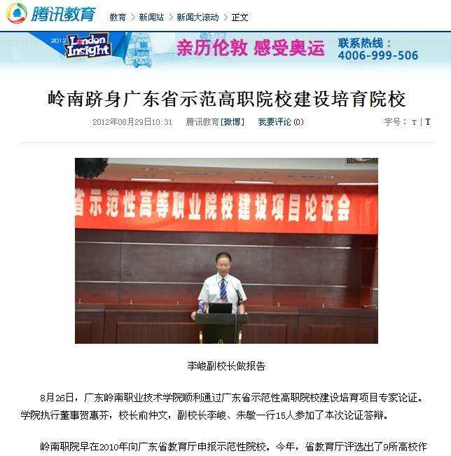 【腾讯网】岭南跻身广东省示范高职院校建设培育院校