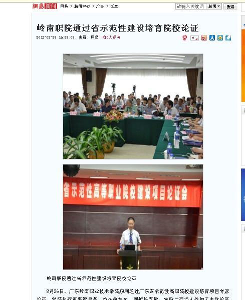 【网易】岭南职院通过示范性院校论证作者:刘冬梅 信息来源:网易新闻 点击数: 更新时间:2012-9-12