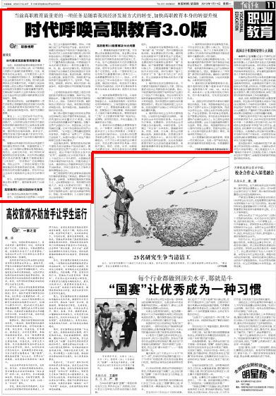 中国青年报讯 当前,我国高职教育发展虽然取得了很大的成绩,但从总体上讲,还不能满足人民群众日益增长的教育需求。比如,高职学生的社会地位、认可度及收入还不高;作为高级技术技能人才,其质量离各行各业的要求尚有不少差距;现代职业教育体系还没有最终形成,中高职之间在培养规格上的区分度还不够鲜明;高职教育还没能成为我国技术创新的重要方面军;在面临第三次新的工业技术革命以及中国企业日益全球化的进程中高职教育还没有准备好,等等。