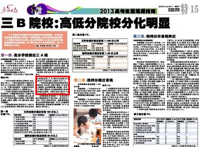 【广州日报】三B院校:高低分院校分化明显作者:邓仲谋 信息来源:本站原创 点击数: 更新时间:2013-6-26