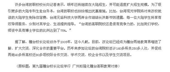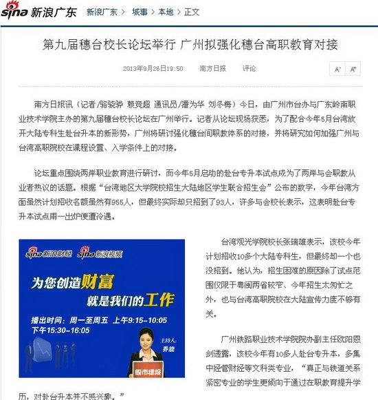 【新浪网】第九届穗台校长论坛举行 广州拟强化穗台高职教育对接