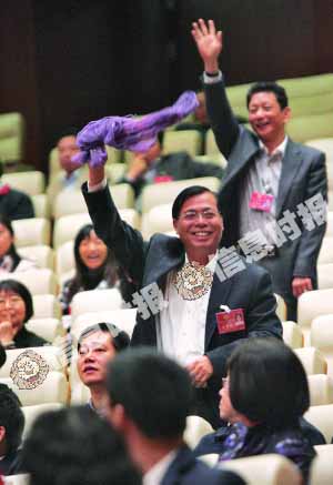 在委员们滔滔不绝的“忘我”发言中,时间很快就到了11点半,按照规定大会发言准时结束。然而,此前没有争取到发言机会的委员却“不死心”,依然争先恐后地举手,希望能打动主持人,延长大会时间。果然,主持人——市政协副主席刘平被委员们的热情感染了,经商议,同意延长10分钟。