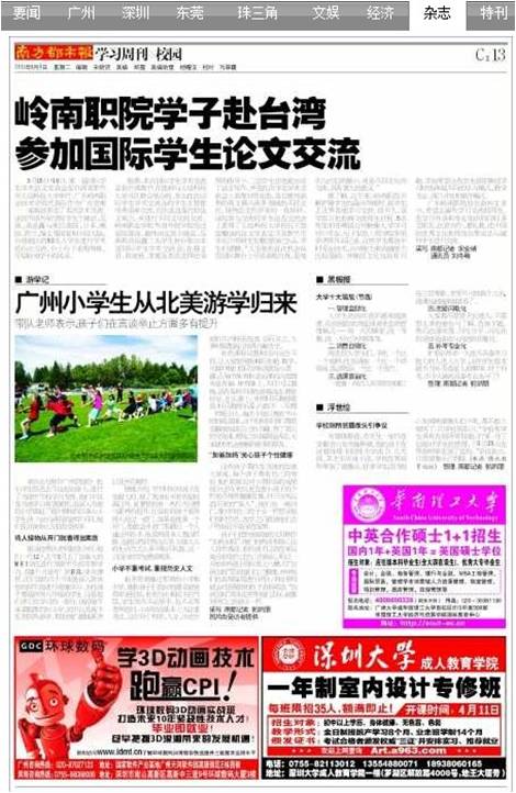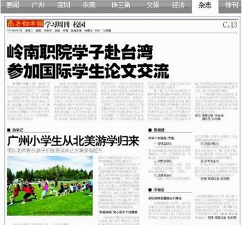 【南都】岭南职院学子赴台湾参加国际学生论文交流作者:宋金绪 信息来源:《南方都市报》 点击数: 更新时间:2011-4-6