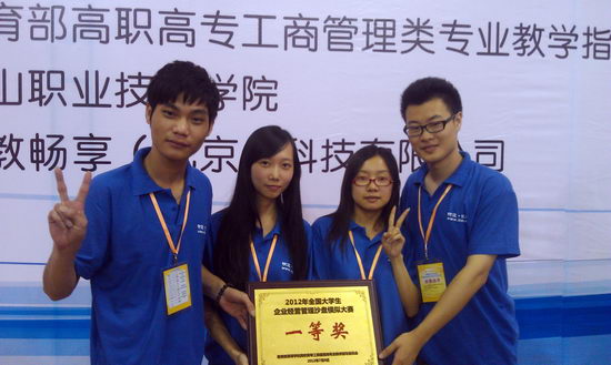 岭南学子决胜全国大学生企业经营管理沙盘大赛作者:郎东梅 信息来源:本站原创 点击数: 更新时间:2012-7-11 岭南新闻网 由教育部高职高专工商管理类专业教学指导委员会主办的“2012年全国大学生企业经营管理沙盘模拟大赛”全国总决赛于7月8日——9日在中山职业技术学院盛大举行。由岭南职院商学院王颖、郎东梅老师带队指导的10级会计电算化专业杨国威、袁晓鑫、许幼君和李晓纯四名同学组成的代表队勇夺企管沙盘项目全国一等奖。 指导老师与获奖学生合影 据悉,本年度大赛设有20多个省赛区,历经近半年的时间,经过校赛、省赛等环节的精心组织和周密安排,全国共有近700所院校1000多支代表队参加省赛,经过省赛选拔一百多所院校代表队参加国赛,是我国高等职业教育经管类专业迄今规模最大的重大比赛活动。 获奖学生合影 通过参赛,充分展示了商学院学生良好的创新素质、创业本领、综合的专业能力、默契的团队合作、灵活的应变能力和实践能力,最终勇夺桂冠,对全面落实学院高素质、高技术技能型专门人才的培养目标,强化学生的科技创新能力具有积极的实践意义。 (图文/郎东梅) |