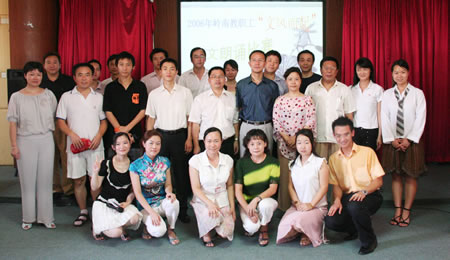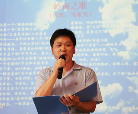 比赛前,学院工会主席、副院长李玉春在致词上指出,希望通过活动能丰富教职工的校园生活,提高教职工的文学素养,并能在赛后将这阵“文学之风”刮遍岭南的每一个角落。大赛中17个老师分别对他们的作品进行了演绎,选手们富有感情的朗诵在沁人心脾的古典音乐和丰富多彩的幻灯片在衬托下,显得更加精彩。经过了2个多小时的角逐,最后集团办谢黎勃老师以《我是青年》)荣获一等奖,人事处马亚光老师、经济管理学院朱海平老师以《岭南之歌》、《再别康桥》荣获二等奖,梁秀娟、张庆丰、李忠芳老师荣获三等奖。马亚光老师荣获最佳原创奖,梁秀娟老师荣获最佳形象奖,朱海平老师荣获最佳台风奖。