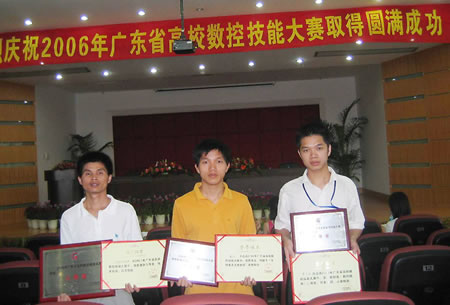 6月23—27日,2006年广东省高校数控技能大赛在深圳职业技术学院举行。代表我院参赛的现代制造学院表现突出,分别获得教师组数控铣床一等奖、三等奖,团体三等奖的优异成绩。
