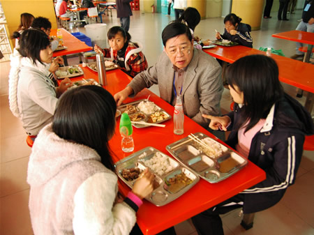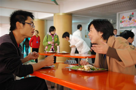 评估专家组组长朱传礼与学生一起共进午餐