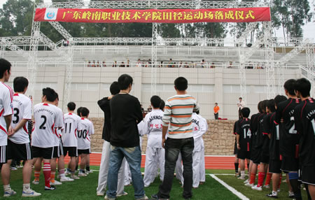 岭南网讯  12月17日,学院举行田径运动场落成仪式,集团贺惠芬总裁,关婉勤副总裁,蒋敏董事长助理,李玉春副院长和各有关部门领导出席了落成仪式。据悉,学院田径运动场是目前我省民办高校中最好、最标准、最先进的田径运动场之一。