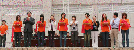 李玉春副院长在致词说,学院田径运动场的落成给师生员工们营造了一个优良的运动场地,标志着学院建设上了一个新的台阶,这是校园的一道风景线,希望大家积极锻炼,享受体育、享受生活,提高运动的热情,支持北京奥运。接着集团、学院领导进行剪彩,礼炮声“轰”地一声响起,飘扬的礼花把场内气氛推向了高潮。