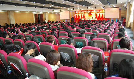 学院第四次团员暨学生代表大会胜利召开[图]作者:岭南教育 发布日期:2007-12-24 10:17:40 点击数: 岭南网讯 12月20日,学院第四次团员暨学生代表大会在图书馆会议中心举行。13:00,大会代表凭相关证件签到陆续入场,并到指定座位就坐,一切都在有序地开展着。 13:30,大会首先召开了预备会议。在简短的40分钟里,全体大会代表举手表决,审议并全票通过代表资格审查委员会名单、代表资格审查委员会《关于代表资格审查的报告》、大会议程、大会主席团成员、秘书长、副秘书长名单、大会选举办法和大会选举总监票人、监票人、记票人名单。 14:00,大会正式开始。出席本次大会的有学院党委丁纪平书记,李峻副书记,党办李春霞主任,学生处傅谦处长,王振光副处长和各二级学院负责学生工作的院长助理等。