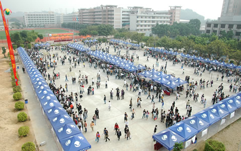 岭南网讯  12月22日,由广东省高等学校毕业生就业指导中心主办,我院承办的2008届高校毕业生经管、技术、文秘类专场供需见面会隆重举行。会上有150多家企事业单位设摊招聘,共招聘近1000个工作岗位,前来参加应聘的省内外毕业生有7000多人。会场气氛热烈,井然有序,省就业指导中心主任朱国华、陈大尧亲临会场予以指导。