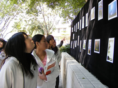 岭南网讯  1月2—9日,《岭南教育》学生摄影记者曾亮超举行个人摄影展。本次摄影作品展出70多幅风光、人物、民俗、风情摄影作品,向人们展示他的第三只眼睛。那一幅幅摄影作品鲜活地展现了作者丰富的大学生活,那一幕幕熟悉的影相勾起了参观者的情感。