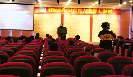 学院举行教师职业教育能力测评汇报会[图]作者:岭南教育 发布日期:2008-1-23 11:09:31 点击数: 岭南网讯 1月22日,学院在图书馆会议中心举行教师职业教育能力测评汇报会,集团贺惠山董事长、俞仲文教授和学院钟燕锋院长等领导参加会议。会上,8门课程负责人从课程整体设计到单元设计,进行了教师职业教育能力测评汇报交流,汇报内容丰富、精彩,给全院教师进行了一次生动的职业教育能力培训,受到贺董事长和俞仲文教授的表扬与肯定。