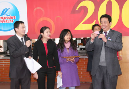 岭南网讯  1月24日,学院第二食堂喜庆祥和,欢快的乐曲,收获的幸福与喜悦洋溢在会场的每一个角落,美好的祝愿与憧憬感染着在场的每一份心境。学院2008年春节团拜会在此隆重举行。