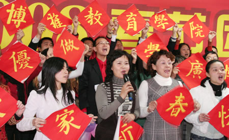集团贺惠山董事长、俞仲文董事长特别顾问、学院领导与全院教职工出席了团拜会。贺惠山董事长代表集团、学院,向全校师生和教职员工致以新春的祝福。他回顾了2007年学院在人才培养等方面所取得的成绩,他指出,过去一年的成绩来之不易,这中间凝聚了全院师生员工的汗水与智慧。希望全院教职员工在新一年里更上一层楼。