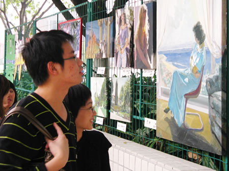 这次展出有版画、油画、雕塑、陶艺和现代艺术作品,有不小是余教授在国外创造的。展览吸引了不小同学驻足观看观看,有的同学细心欣赏、有的同学对品进行点作评。