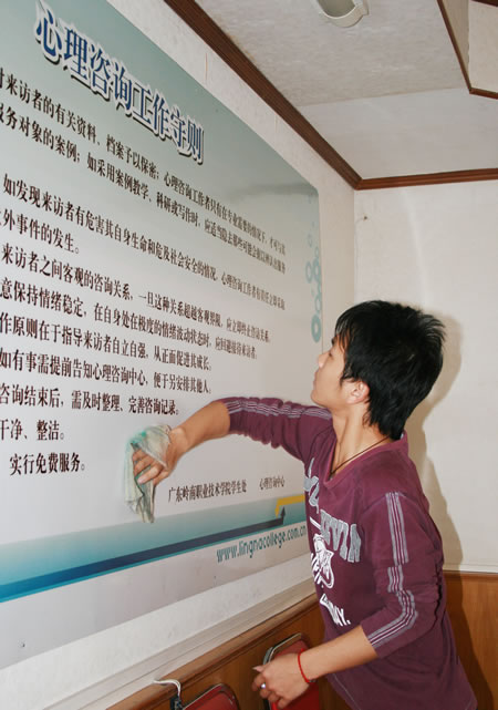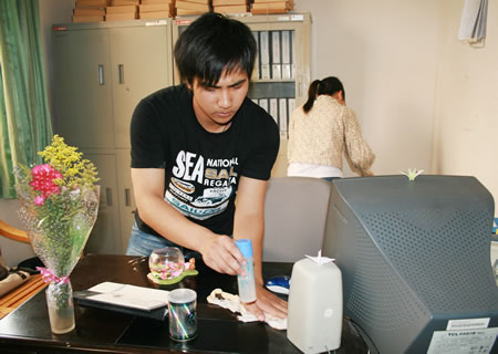 药学院党支部开展学雷锋活动[图]作者:岭南教育 发布日期:2008-3-14 14:50:19 点击数:      岭南网讯  春意盎然存三月,雷锋精神现校园。又一个雷锋月迎着春风向我们走来了,3月12日,药学院党支部组织2006级所有的入党推荐对象参加学雷锋打扫办公室活动。