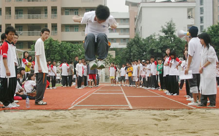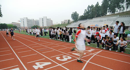 在本次运动会的比赛中,长跑和短跑倍受同学们关注。在长跑的比赛中,每个运动员都由步伐坚定慢慢地转变为步如灌铅,有的脸红,有的脸色苍白,更多的是喘气,“加油,加油。”一步步,一米米,近终点了,欢呼声,问候声,交织成一片恒久的声音,不断地回荡在岭南的上空。比起长跑,短跑就显得迅速而充满激情,当枪声一响,运动员们就像离炫的箭一样,加速加速再加速,当拉拉队还没来的及叫几声加油的时候,冠军就早已出现在观众面前了,总是给人一种回味无穷的感觉。最后的接力赛更是让所有观众大开眼界,师生团体接力赛,你追我赶,奋力拼搏,赛场外则是助威声、呐喊声,一浪高过一浪,当老师们第一个冲过终点线时,掌声欢呼声更是直冲云霄。