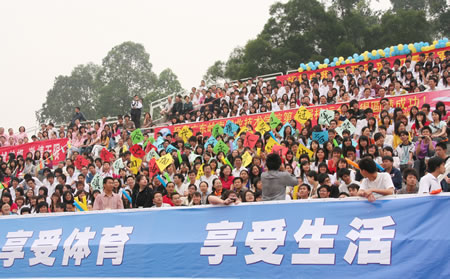 岭南举办第八届田径运动会,迎接北京奥运会[图]作者:岭南教育 信息来源:不详 点击数: 更新时间:2008-4-25      岭南网讯    4月25日,今天距2008年北京奥运会开幕还有105天,岭南举办第八届师生田径运动会,数千师生以“健身运动增强体质”的实际行动迎接北京奥运会,为奥运会鼓劲喝彩。