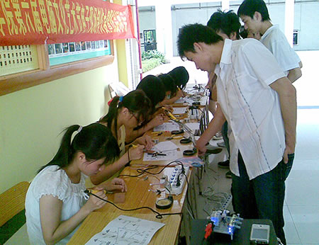 岭南网讯  5月8、9日,第六届电脑文化艺术节电子现场制作大赛在第一教学楼大厅举行,比赛收到了良好的效果,激发了同学们的创新思维,提高了同学们的动手能力,丰富了同学们的第二课堂活动。