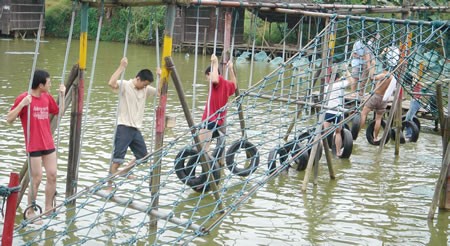 岭南网讯  5月10至11日,信息工程学院组织80多名学生干部到番禺原野庄园参加户外拓展训练。