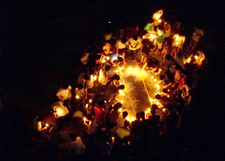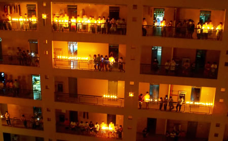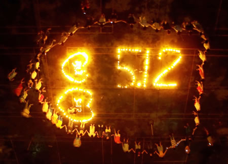 岭南网讯   5月19日,正值5•12汶川大地震七日祭。当晚,学院有一部分学生自发在宿舍楼前,点燃蜡烛,向四川地震遇难者默哀,为灾区人民祈福。