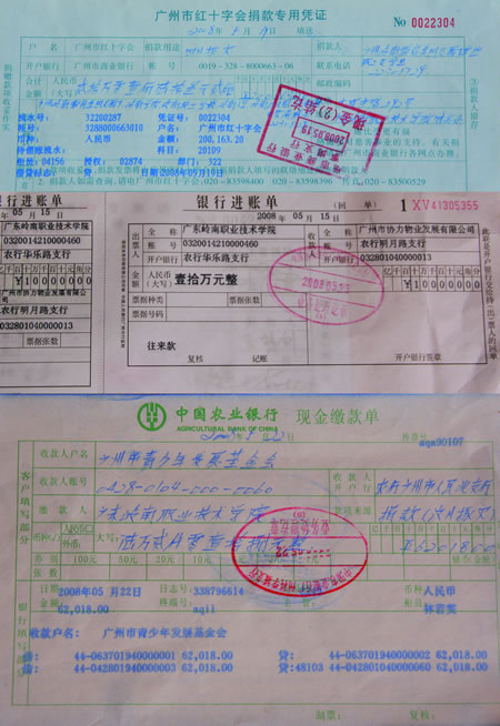 岭南网讯   截止到23日止,岭南师生为四川地震灾区捐款数额已达362181.20元。据悉,这批资金已经送往广州市青少年发展基金会、广州市红十字会,学院党委和工会组织的捐款活动仍在继续接受捐款,还有不少师生员工陆续捐钱捐物,进一步表达爱心。