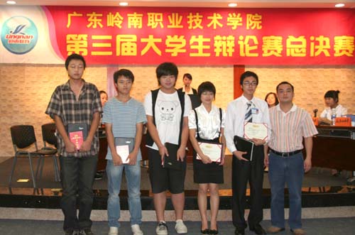 学院第三届大学生辩论赛总决赛落幕(图)作者:岭南教育 信息来源:不详 点击数:222 更新时间:2008-7-8 岭南网讯 6月26日,学院第三届大学生辩论总决赛在图书馆会议中心举行。参加总决赛的两支代表队分别是经济管理学院和药学院。经过近一个小时的激烈辩论,药学院以0.12分的微弱优势夺得本次辩论赛的冠军。