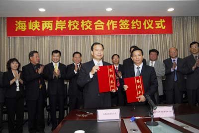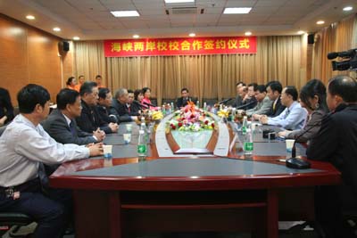 俞仲文副会长谈到,我们要以未来的技术来武装现代的学生,采用大陆与台湾合作的办学模式;要把签约落实到实质性的合作,实现双赢。而台湾五校的代表们则提出台湾与大陆办学方式有许多的不同,需要双方在合作中达成共识;并主动谈到“大陆2年的专科教育+台湾2年的技术本科教育”的办学模式可以让大陆广大的高职学生获得本科文凭;建议双方可以从小做起,从短期培训做起,将双方的合作由浅入深地开展下去。最后,钟燕锋院长代表我院与台湾五院签订了办学协议并由贺惠山董事长接受了五院的纪念品。