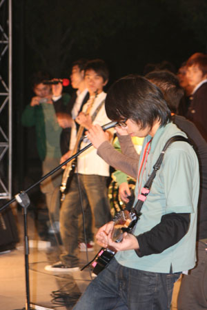 岭南网12月24日报道 2008年12月23日晚,在岭南学院的篮球场上,一场由经济管理学院东校区举办的师生音乐会暨学院音乐协会两周年庆典活动正在上演。