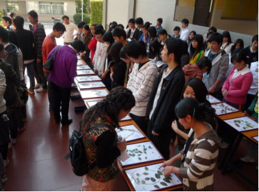 岭南网12月30日报道 药学院第五届药用植物标本大赛于2008年12月18日在一教大厅隆重举行。药学院杨凤琼院长,学院宋劲诗助理及学院的老师们亲临现场指导与评分。学院刘国章副院长也到现场指导同学们制作标本,交流经验。