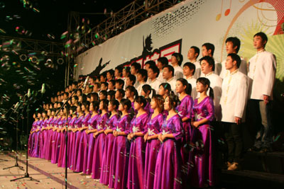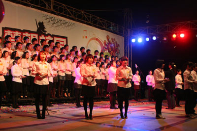 岭南网12月31日报道 2008年12月30日晚,岭南“绽放青春,梦想校园”第五届合唱节在学院篮球场唱起来,学院院长助理程翠英、学生处处长傅谦等领导出席了晚会。