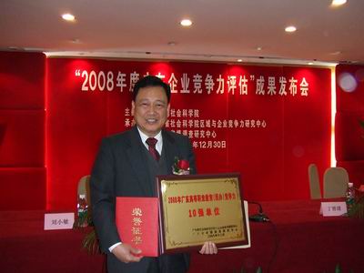 岭南网12月30日报道 12月30日,由广东省社会科学院区域与企业竞争力研究中心和广东省省情调研中心联合的“2008年广东大型企业竞争力评估与分析”课题报告公布。广东省社会科学院副院长李新家、王经伦、刘小敏、谢名家,省委宣传部理论处副处长丁晋清等领导出席了发布会。我院党委书记丁纪平代表学院出席了授牌仪式。