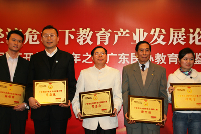 贺惠山获“广东民办教育评鉴•广东省民办教育杰出贡献人物”称号作者:岭南教育 信息来源:不详 点击数: 更新时间:2009-3-6   贺惠山(左三)在颁奖仪式上        岭南网讯3月6日 今日下午,南方都市报主办的经济危机下教育产业发展论坛——改革开放30周年之“广东民办教育评鉴”颁奖典礼,在广州举行。集团董事长贺惠山获“广东民办教育评鉴•广东省民办教育杰出贡献人物”称号。