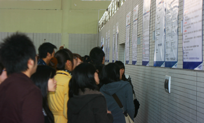 企业、用人单位——抓住机遇,储备人才   毕业生就业难对广大毕业生而言明显是坏事,而从企业或社会用人单位角度,却是机遇,是好事。毕业生对于就业的自我调整,“先就业,再择业”的思想观念意味着人才由“卖方市场”转向“买方市场”,正是机遇。不能拒之门外,要目光长远,着眼发展,储备人才。     面对日益紧张的竞争压力,就业压力已经不只是应届毕业生的专用名词了。招聘会上,大一大二学生的身影并不鲜见。为什么刚刚踏进校门不久就来参加招聘会呢?他们说,来参加招聘会主要是想熟悉一下招聘会的环境,多了解就业形势和招聘单位对应聘者的要求,增强自己对就业的认识和紧迫感,也借此机会锻炼自己,认清形势,知己知彼,方能“百战百胜”!当然招聘单位中对女性仍有“另眼相待”的,记者看到一名女生递简历给招聘者,招聘者看后说:“简历上为何不写身高?男生可不写,而女生一定要写清楚”,有好多单位的招聘要求都有写明是招1.6米以上的。那不达标的女生们要怎么办呢?据此,记者随即采访了那名向一名女生,她说:“我们在简历上可以把身高写成比自己实际高度高出5厘米左右,因为女生可以穿高跟鞋啊!”                                            《岭南教育》报记者:陈 娟 冯香婷 林秀莉          谢应好 王宏斌 叶旭琪  周慧琳 摄影记者:黄镇仕                                                           |