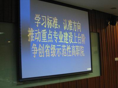 重点专业建设标准学习研讨会 钟燕锋院长首先传达了省教育厅的有关高等职业教育发展方向和新的评估要求,强调当前我省高职教育是通过示范院校建设带动高职院校的发展,所以我院要积极做好各方面准备,以争创省级示范性高职院校为目标,以重点专业建设为核心,推动我院的教研教改,以期提高人才培养质量。另外,也肯定了各二级学院的工作成绩,通过广泛推进职教能力测评,使全校教师的思想观念有了很大转变,为深入内涵建设奠定基础。他还强调我们要找差距,要先对我院各专业建设状况进行摸底,重点了解师资队伍情况、课程建设和实验实训条件等。