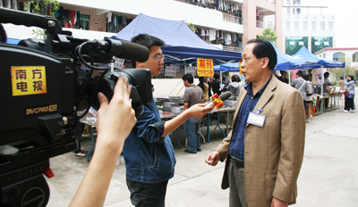 广东岭南职业技术学院副院长刘国章接受南方电视台记者采访   女生特喜欢在创业实践周的摊位上“淘宝”