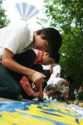 岭南网讯 5月15日,广东岭南职业技术学院第七届电脑文化艺术节之“文明上网,拒绝网隐”签名活动在东区篮球场门口举行,千余师生现场签名。
