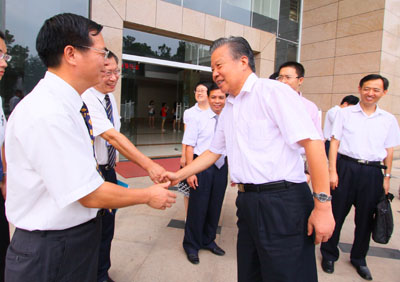 国务院参事室参事任玉岭(右)与集团领导亲切握手