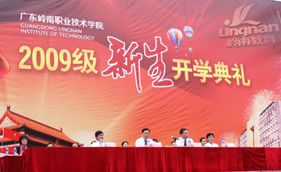 岭南网讯 9月29日上午,岭南职院2009新生开学典礼在校田径运动场隆重举行。校长俞仲文、党委书记丁纪平、党委副书记兼校长助理程翠英及各二级院院长和相关处室负责人出席了开学典礼。大会由学生处负责人卜佳锐主持。
