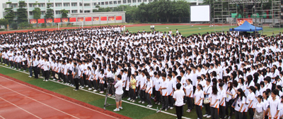 上午八点十五分,开学典礼正式开始。丁纪平书记代表学院党委、全院528名师生党员以及13000余名师生员工,向2009级4907名新同学们表示了诚挚的祝贺和热烈的欢迎。丁书记殷切希望同学们学会学习、学会做事、学会为人、学会奉献,树立崇高的理想和明确的目标,以实际行动,丰富和充实大学生活,沿着岭南辉煌的业绩续写新的篇章。