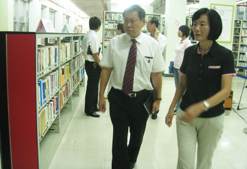 加强面对面交流 深入开展调研活动作者:佚名 信息来源:本站原创 点击数: 更新时间:2009-10-28 岭南职院校长俞仲文(左)在图书馆馆长张慧湘陪同下,来到图书借阅室调研