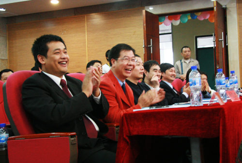高校联盟物流知识竞赛今揭晓作者:佚名 信息来源:本站原创 点击数: 更新时间:2009-11-27 俞仲文校长致辞 竞赛抢答 岭南职院校长助理杜文宇(左)、商学院副院长尹卫忠(左二)为选手精彩的表现鼓掌 商学院院长李旭穗(右)与冠军合影