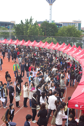 岭南新闻网 持续降温和寒风,仍挡不住全省大专毕业生涌进广东岭南职业技术学院的人潮。“不论天多冷,刮多大风,总之没有递出10份简历。全力表现出最好的一面,把自己推销出去换一份合适的薪水,我是不先离开的。”广东岭南职业技术学院2007级会计电算化专业学生梁丹妮说。 广东省2010届高校毕业生就业供需见面活动经济﹑技术﹑文秘(高职﹑高专类)广州开发区专场,16日在该院举行。 应聘者提前潜伏 当日早上8时许,“降温了,风又大,本来以为去食堂买早餐不用排队,结果食堂里全部挤满人,好多人穿正装拿简历。” 广东岭南职业技术学院2009级应用药学专业学生卢间萍说,她还发现商店、房檐下、运动场周围聚集了许多人。 一个半小时后活动才开始,此时现场已有超过2000人在等待。招聘会高潮时,即便承办方准备了多个流动厕所,校内的固定厕所还是爆棚,距离招聘现场50米外的厕所外都排了5米长队。14日晚,学院周边旅馆已被预订一空,据了解多是应聘者。 把招聘会当大课堂 广东岭南职业技术学院就业办副主任周群健说:“今天有300家企业来招聘,提供就业岗位5160多个,其中160家企业来自开发区。” 然而,这些参加招聘企业给大学生带来就业机会的同时,也给一部分大学生带来“鲜活的大课堂”。 招聘会对于广东岭南职业技术学院的学生来说是难得的,这是在家门口找工作。“不用去外面求职,好工作自己送上门来。”该院教师杨燕雄说。师生开心的时候,招聘企业的人力资源总监自驾车来学院表示感谢。 “为服务好招聘会,我们安排了人力资源专业教师带着300多学生来现场做志愿者,这些08级学生所学的都是人力资源管理、工商企业管理专业,利用所学知识协助企业开展招聘与选拔,通过这一实践课程,学生可尽快熟悉人力资源管理及招聘的基本流程,积累能力和竞争力。”广东岭南职业技术学院商学院院长李旭穗说。 “人力资源管理专业学生挺难找到实习岗位,当志愿者可以为社会做贡献,还能为明年做准备,毕竟这会当面试官,下回就要自己被面试了。”志愿者洪云说。 为企业量身定制简历 “招聘会信息是在校内的网站上见的,上周几乎天天做面试准备。”2007级学生李文娜说,准备好简历,以良好的精神状态迎接挑战,希望能找到好的工作。 “不要扔!你还我的简历。”某应聘者大声说道。招聘会现场,知名企业竞争激烈,大多都收到一沓厚厚的求职简历,被废弃的简历数量更惊人。“简历可不是艺术品,更不要弄些花拳绣腿,”广东岭南职业技术学院商学院院长李旭穗说,她建议,“投简历要用心,先要了解企业和做好职业规划,为企业量身定制你的简历。 “逛了一圈一份简历没出手”是不少院校毕业生遭遇的恐惧。广东岭南职业技术学院为能让学生脱颖而出,举办了“企业家论坛” 、“简历设计大赛”等,还开展了“一对一”个性化就业咨询服务,为毕业生进行有针对性就业指导。相对于普通高专毕业生,职业院校毕业生成了“香饽饽”。不少开发区企业招聘负责人明确表示,优先考虑本市职业院校的毕业生。但人力资源专家提醒毕业生要注意劳动风险,学习劳动合同法规,提高自我保护意识。 企业进校淘宝 “企业来校园淘宝”招聘高职院校品评兼优的毕业生,为企业创新发展注入新鲜血液。 随着经济形势好转,企业对高职高专毕业生的起薪点提高,底薪每月普涨300元—500元。此次供需见面会上,企业开出的薪酬普遍在1500元—2000元之间,较往年有所上调。东亚银行、中国联通、广州诚伯信息有限公司、广州白云电器设备有限公司等企业热捧。 尽管全球经济危机正在退去,但就业危机仍继续困扰大学生。“经济复苏,激活了企业用工需求,这次招聘会我们严把企业招聘信息,有用工需求的企业才准入场,来招聘的企业须围绕专业挑选适用的高级技能型人才。”广东岭南职业技术学院就业办副主任周群健说。 近20000人参加招聘会 “在家门口招人才”是本场招聘会的亮点。作为全省招聘会行业性、专业性、区域性非常强大,招聘企业多是广州开发区知名企业。岭南职院得天时地利优势,该院有毕业生表示,校内遇上这样针对性的招聘会非常少,机不可失,“专业不一定对口,对兴趣的岗位就优先考虑”。该院2010届毕业生3630人,旅游管理、营销管理等专业学生受青睐。周边院校的毕业生近20000人参加招聘会。 广东岭南职业技术学院校长俞仲文说:“经济回暖比预想的要快要好,职业院校毕业生更应该把握机会,静下心来好好准备。”他认为,招聘会是实现就业的重要机会,毕业生要先就业后择业。他表示,学校会继续加大力度积极引导毕业生加强与企业沟通、交流,提高就业技能。 “忠诚第一,能力第二。”俞校长提醒大学生,企业面试特别看重个人综合素质,除专业技能外,更注重应聘者的态度﹑诚用及人生观﹑价值观等问题。 预计60万名毕业生在广东求职 “2010年我省高校应届毕业生将超过39万人,比今年增加约6万人左右,人数再创历史新高。加上外省到粤求职以及去年暂缓就业学生,2010年预计将有60万名毕业生在广东求职。因此,在金融危机的影响仍未消除的情况下,高校毕业生就业仍存在一定的压力。” 广东省大学生就业指导中心主任黄兆团透露,他说:“广州开发区是我省经济发展最具活力的区域,全区共有各类企业三千多家,世界500强企业105