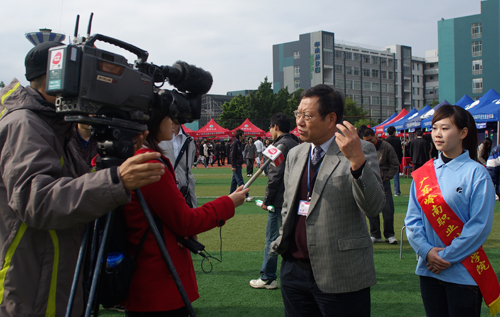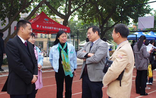 【焦点】今日招聘会“好工作送上门”经济﹑技术﹑文秘(高职﹑高专类)广州开发区专场今日举行作者:佚名 信息来源:本站原创 点击数: 更新时间:2009-12-16 广东省大学生就业指导中心主任黄兆团主持招聘会启动仪式 广州岭南教育集团董事长贺惠山(左)与广 东省大学生就业指导中心主任黄兆团在招聘现场交流 广州市萝岗区副区长潘史扬(中)在广州岭南教育集团董事长贺惠山(右)、广州岭南教育集团执行董事贺惠芬(后左二)、广东岭南职业技术学院校长俞仲文(左)陪同下视察招聘会现场 招聘会开始30分钟 招聘会开始120分后 广东岭南职业技术学院校长俞仲文(右)与应聘学子交谈 广东岭南职业技术学院校长俞仲文(左)接受 南方电视台今日一线、广东电视台广东报道记者采访 广东岭南职业技术学院校长俞仲文(右二) 接受广州电视台今日报道记者采访 广东岭南职业技术学院校长俞仲文(右二)、校长助理 杜文宇(左一)、商学院副院长尹卫忠(右一)在招聘现场