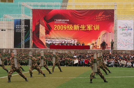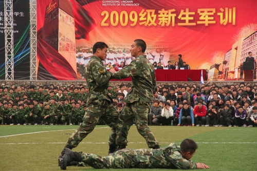 2009级军训从今天开始作者:佚名 信息来源:本站原创 点击数: 更新时间:2010-1-8 主席台 警棍盾表演 擒敌术表演 岭南新闻网 1月8日,寒风凛冽,岭南职院校园却出现了一大片流动的迷彩绿,还不时有热情高亢的军歌嘹亮响起,岭南职院2009级军训拉开序幕。 8点半,2009级学生军训动员大会在田径场正式召开,岭南职院校长俞仲文、党委书记丁纪平、校长助理程翠英等校领导,以及二级学院院长、二级学院院长助理、新生班辅导员、09级全体新生、中国人民武装警察8731部队首长、军训教官等出席动员大会。 8731部队指挥自动化站站长汪又丹少校对09级新生进行队列的简单集合,在寒风中,在汪又丹少校的指挥下09级学生集体学着“向左转、向右转”等简单令,军训的气氛逐渐显现。 随后,8731部队的官兵进行了队列、擒敌拳、应急棍术、警棍盾等七项表演,全场师生被官兵精彩的表演深深吸引住,全场不时爆发出热烈的掌声,尤其是武警特种战术表演更是引起全场的轰动,让同学们在观摩中深刻的体会到军人严明的纪律及雷厉风行的作战行为。 紧接着,校长俞仲文发表军训动员讲话,他表示学校坚持给每位新生进行军训是因为军训对同学们来说是一次难得的锻炼机会,同学们要学习军人高尚的品德、学习军人钢铁般的性格、学习军人严明的组织纪律观念。校长俞仲文热切寄望同学们能饱满的精神和乐观的态度参加军训,为未来三年的大学生活打下坚实的基础。最后,俞校长提出要“服从命令、听从指挥”,“坚忍不拔、刻苦训练”,“文明礼貌、刻苦训练”几点希望。 军训团六营营长陈专中尉和应用药学二班的张安琪也分别代表教官、同学作了发言。 据悉,岭南职院2009级新生军训因为甲型流感的影响推迟到现在才正式开始,军训将持续九天,到1月16日结束。在接下来的军训旅程里,同学们将接受军姿、齐步走、正步行、擒敌术、紧急疏散等军事训练。还有心理教育讲座、法制与安全讲座、国防教育讲座,及将于1月10日下午邀请奥运冠军冼东妹开展专题讲座。军训项目多多,训练严格,讲座内容丰富,同学们将深刻体会人生的重要一课——新生军训。(特约记者邱秋云) |