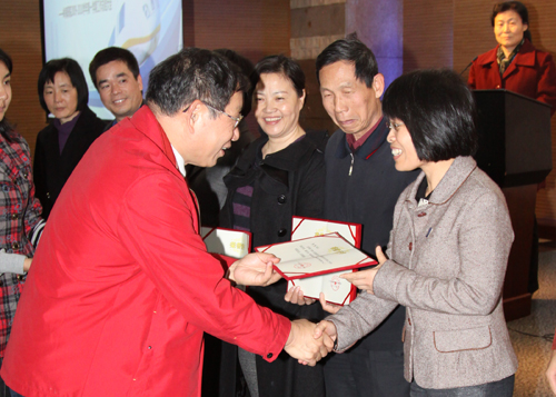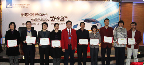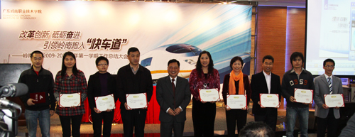 27名思政课建设评估工作先进个人受表彰作者:佚名 信息来源:本站原创 点击数: 更新时间:2010-1-25 俞仲文校长(左五)同“思政课建设评估工作先进个人”合影 丁纪平书记(左五)同“思政课建设评估工作先进个人”合影 李峻副校长(右一)同“思政课建设评估工作先进个人”合影 岭南职院校长俞仲文(左)向获得荣誉称号的财务处 处长张杏颁发证书,并同她亲切握手,表示祝贺。 岭南职院党委书记丁纪平(右)向获得荣誉称号的《岭南教育》主编甘应鑫颁发证书,并同他亲切握手,表示祝贺。 岭南新闻网 本学期末,广东岭南职业技术学院表彰了27名“思政课建设评估工作先进个人”,俞仲文校长、丁纪平书记、李峻副校长等领导为受表彰者颁奖。 俞仲文校长指出,思政评估不仅关系我院思想政治理论教学工作是否合格,而且关系到学院的办学方向、指导思想的问题,更关系学院思想政治教育工作是否符合中国特色社会主义的价值观。 表彰决定中称,在2009年11月26至27日,广东省教育厅对学院思想政治理论课建设进行了专项评估。经过全体师生员工共同努力,圆满完成了此次评估工作任务,并涌现出了 批先进个人。为了表彰先进、树立典型,经校领导研究决定,授予石丽媛等27名同志“思政课建设评估工作先进个人”荣誉称号。希望受表彰的同志,能够珍惜荣誉,再接再厉,再创佳绩。广大教职员工要以先进为榜样,开拓创新、扎实工作,在推动学院教育事业发展过程中做出应有的贡献。 《岭南教育》记者 傅浩洋