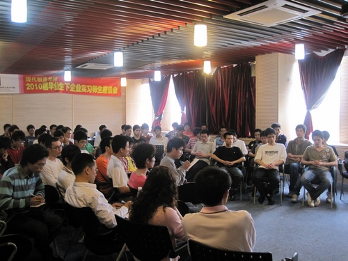 现代制造学院召开2010届毕业生下企业实习师生座谈会作者:佚名 信息来源:本站原创 点击数: 更新时间:2010-3-3 俞仲文校长(左二)与师生现场交流 现代制造学院2010届毕业生下企业实习师生座谈会现场