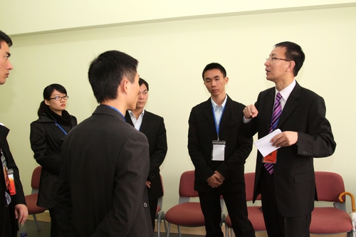 岭南职院副校长李峻(中)给学员讲解游戏规则